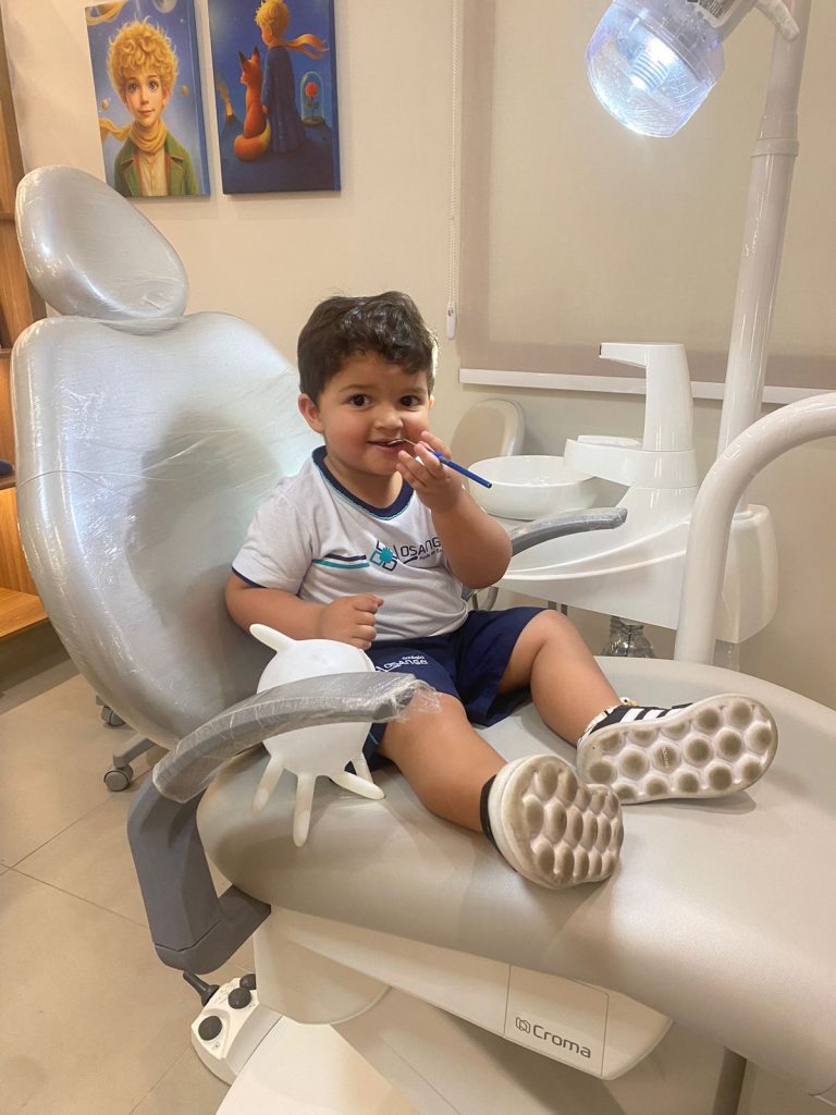 E isso é verdade!  Os pais e responsáveis pela saúde deste bebê irão receber muitas orientações importantes nessa consulta. Além disso irão tirar dúvidas que possam surgir, tais como:  Qual a escova e pasta de dente ideal? Qual a forma mais correta para escovar os dentinhos? Quais produtos podem ser utilizados? Usamos fio dental em bebês? Qual a quantidade de pasta a cada escovação?