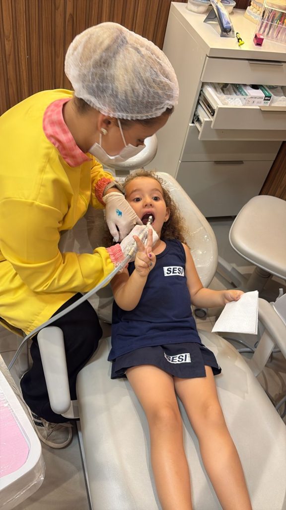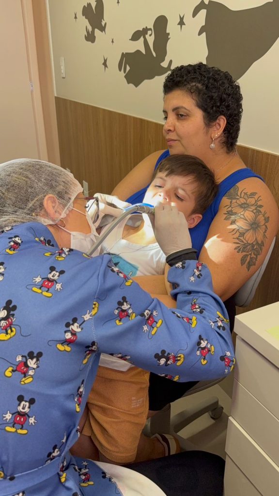 Nós realizamos a limpeza dos dentinhos com uma escovinha e pasta específica para o procedimento, além de muito amor e carinho. Em alguns casos se faz necessária a utilização de outros dispositivos, como ultrassom, que é indicado quando há acúmulo de tártaro. É um procedimento totalmente indolor e muito divertido! Utilizamos a fase de profilaxia também como um condicionamento, para que a criança se adapte ao ambiente odontológico e se familiarize com o toque e equipamentos por nós usados.